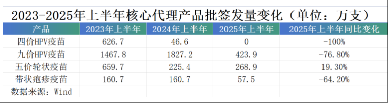 具体来看,2025年上半年,智飞生物核心代理产品批签发量普遍下降,其中默沙东HPV疫苗表现最为突出。